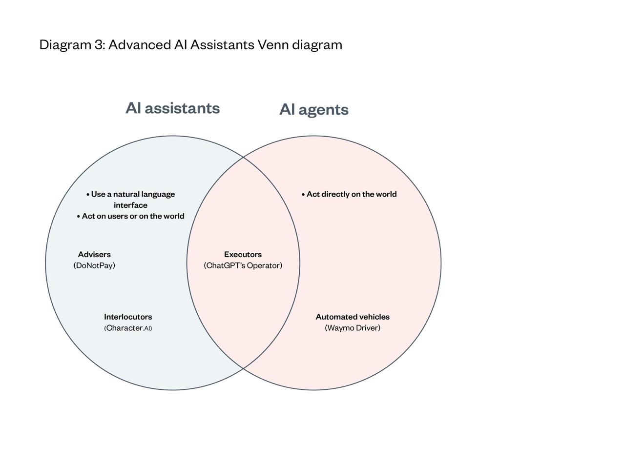 Advanced AI Assistants (‘Assistants’) are closely related to but not the same as AI agents.